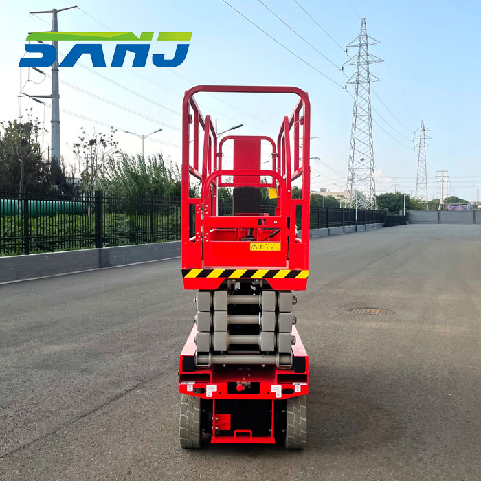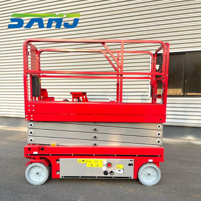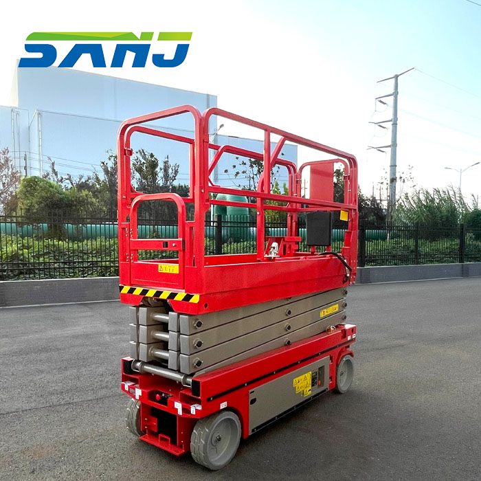 S0808 hydraulic wheel scissor lift, working height 9.8m, lifting capacity 230kg, CE compliant. Equipped with extension platform (extendable 0.9m), effectively extending the working range. 230kg hydraulic wheel scissor lift has compact design, wear-resistant rubber tires and flexible steering.