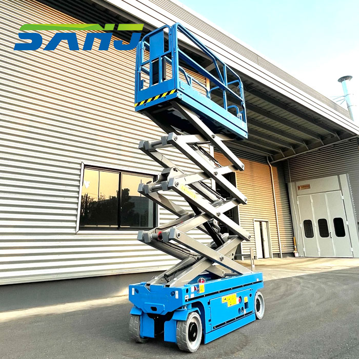 S1414 15.8m hydraulic scissor lift, lifting capacity 320kg, CE standard. With extension platform (extendable 0.9m), the working range is effectively expanded.